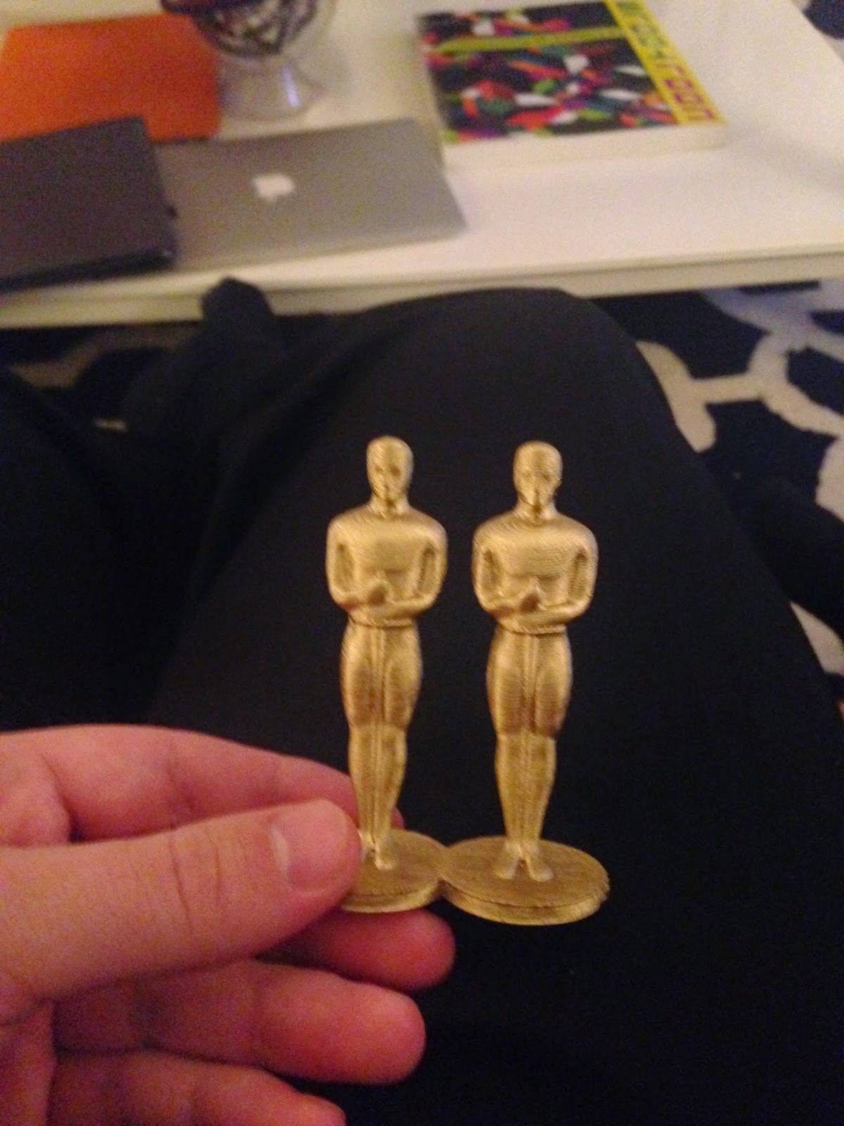 PS Grace and I won “Best Dressed Couple” at the party, and received a pretty cool pair of conjoined 3D-printed Oscar’s. We weren’t comparing, though. 🙂