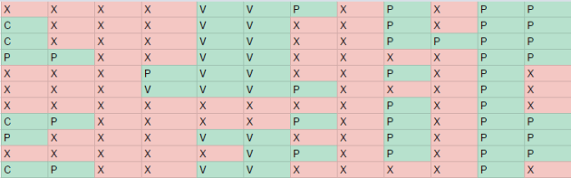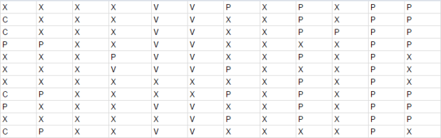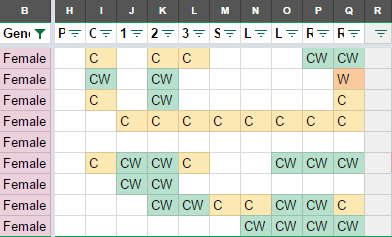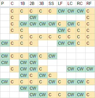 C = Can play, CW = Can and want to play. Don’t worry — this is only about half of our team.