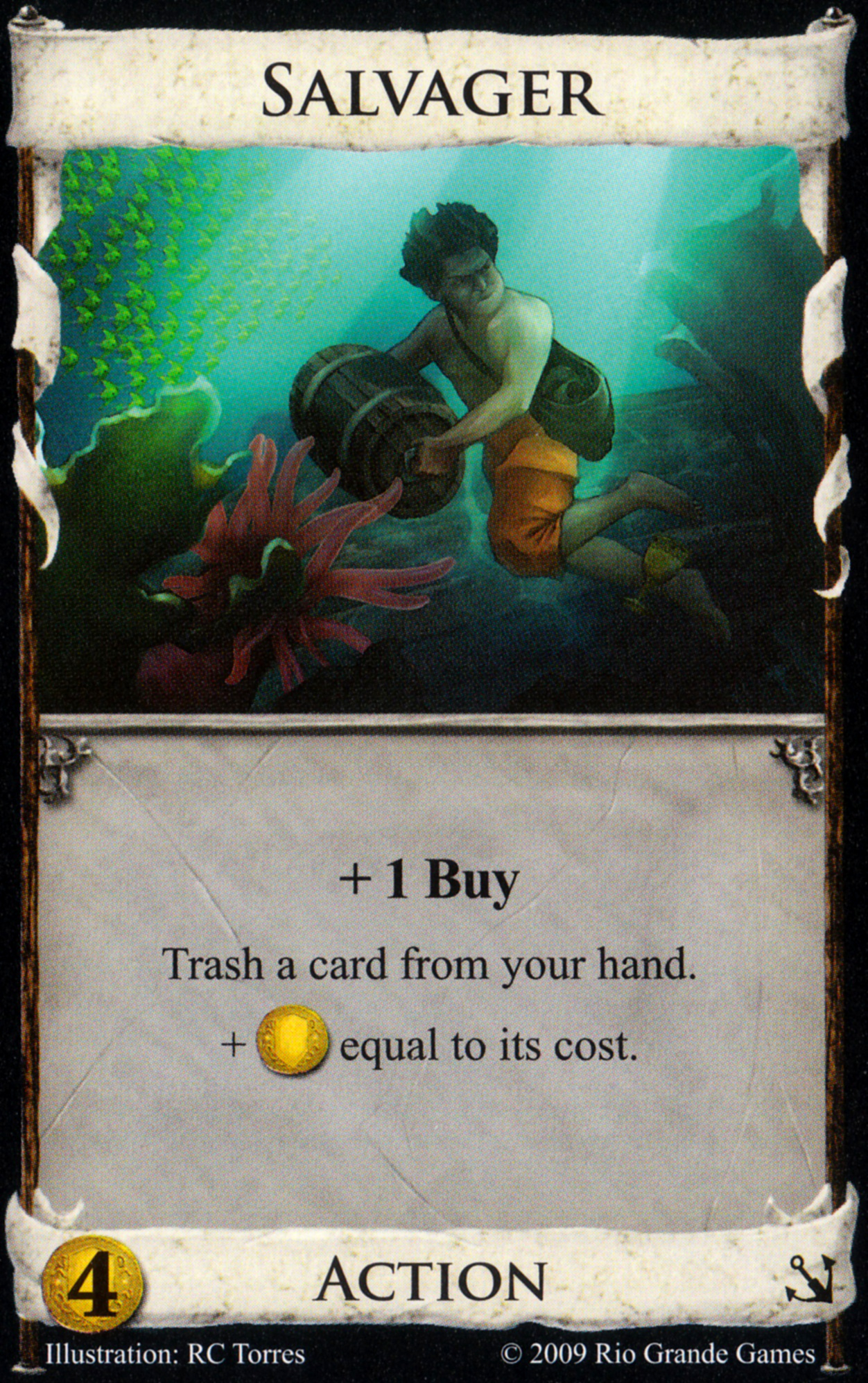 There are other types of trashing cards that give you some sort of benefit depending on what you trash. A classic from the Seaside expansion is Salvager: